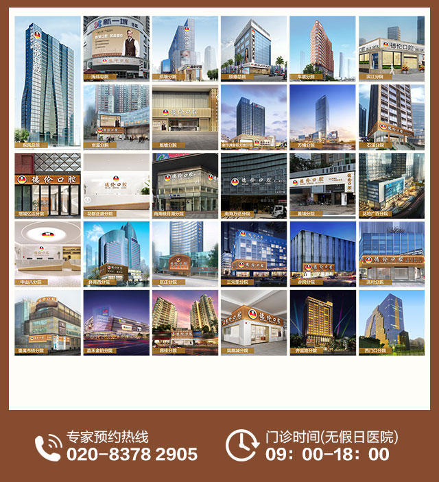 专家预约热线:020-83782905本网站信息仅供参考,不能作为诊疗及医疗依据地址:广州市越秀区东风中路418号华以泰国际大厦4、17、18、19、22楼(正骨医院对面)广州德伦口腔 粤ICP备11073526号医疗广告审查证明文号:粤(A)广(2024)第1332号