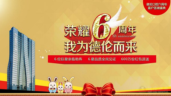 2016年7月30日(明天),即将迎来全民狂欢、史上劲爆的德伦口腔6周年客户感恩答谢盛典。届时,当红明星名人、口腔泰斗,政府政要,云集一堂,将共同见证德伦口腔又一里程碑性大事件。《寒战2》巨星李子雄为德伦而来,携手德伦与顾客共进盛宴!更有红包雨、幸运大抽奖,奢华大礼包等着你,倒计时仅剩1天额。