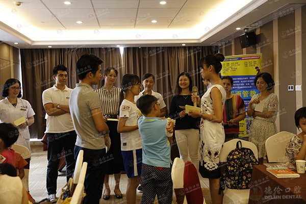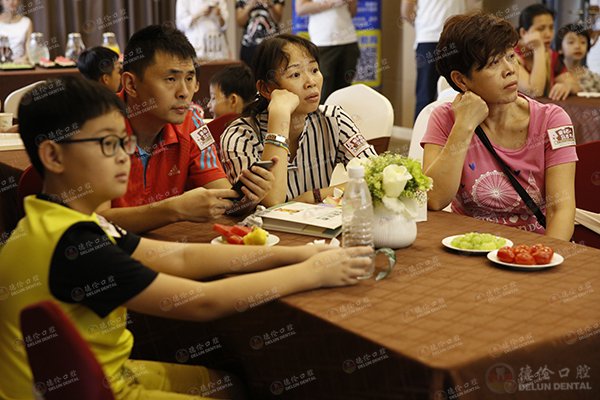 ▲家长和孩子都认真倾听德伦专家讲解青少年牙齿保健问题