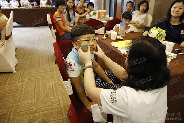 ▲德伦口腔医护人员现场帮儿童检查牙齿情况