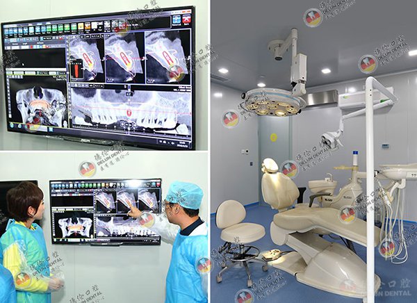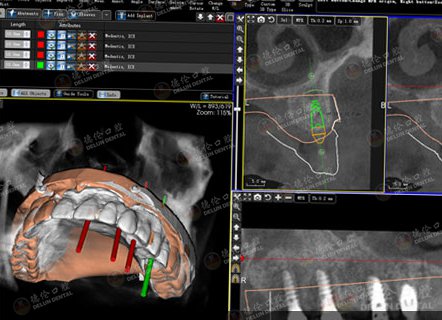 德伦口腔引进全球新型一代德国ICX数字化导板种植系统设备,在此基础上,增加临床影像采集、口内或模型扫描取像、团队专家会诊制度;实现治疗实施、数据传输、计算机辅助设计(CAD)、计算机辅助制造(CAM)、保证个性化美学义齿精益制作、临床技师团队协作、个性化服务等环节有机整合在一起,准确控制种植体的植入位置、方向和深度,避开关键性神经和血管。确保种植体可靠植入,种牙时感到无恐惧!