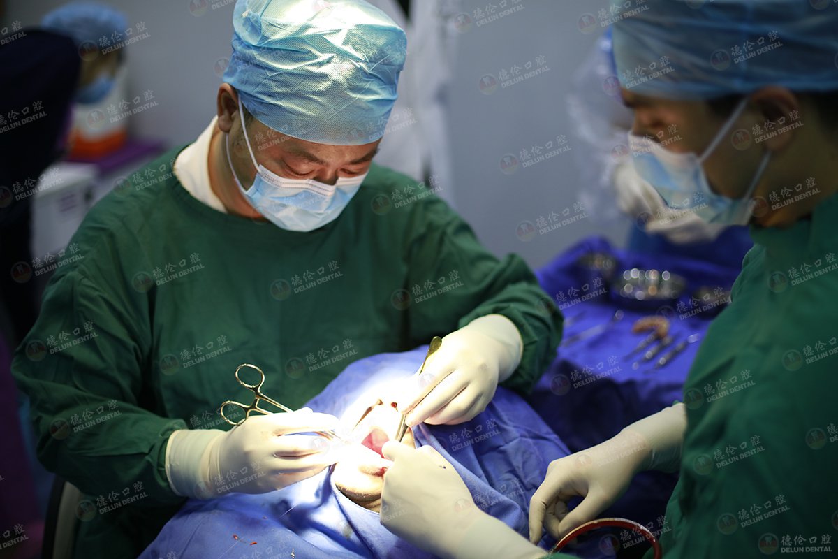 今年5月8日下午第五届口腔种植大师论坛现场,徐院长对无牙颌患者进行数字化导板 all-on- 4种植的实况直播