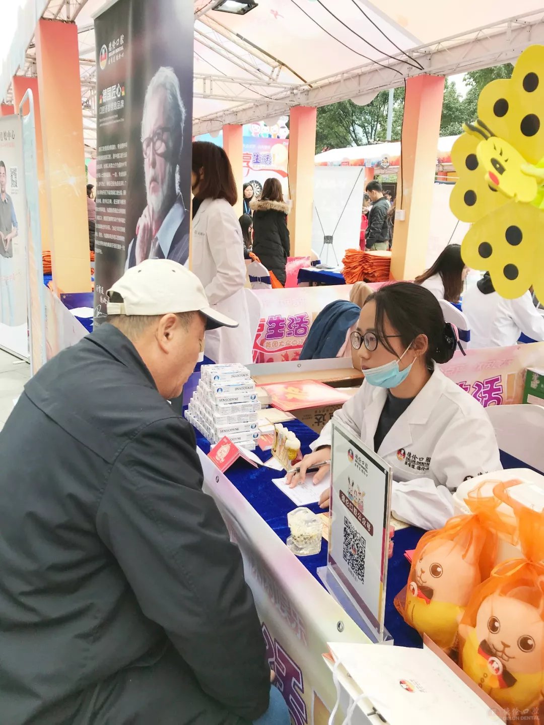 小德登上舞台,借此活动向台下游客宣导“粤口腔,粤健康”公益普查行动,德伦口腔将不定期定期召开口腔健康讲座,提供口腔检查、咨询以及义诊,帮助更多市民及时预防、发现和治疗口腔疾病。