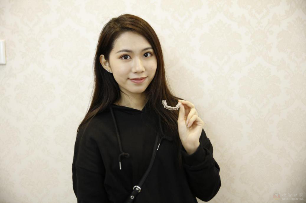 德伦口腔根据邓蝶儿的口腔数据定制出了专属于她的个性化隐形牙套,隐形牙套因为其颜色透明,并且薄至1mm,不仔细观察几乎无法发现,并且使用灵活,刷牙进餐参加重要场合都可以自由佩戴,对矫牙期的牙齿清洁也完全没有影响,一直深受广大爱美人士的青睐。邓蝶儿看到这么轻巧的牙齿将会把自己的牙齿排列整齐,不禁感慨口腔医学的精湛。