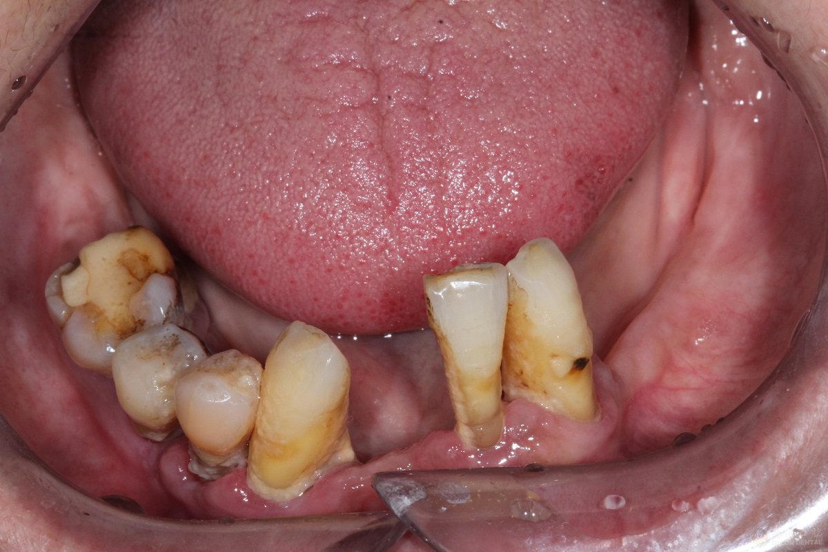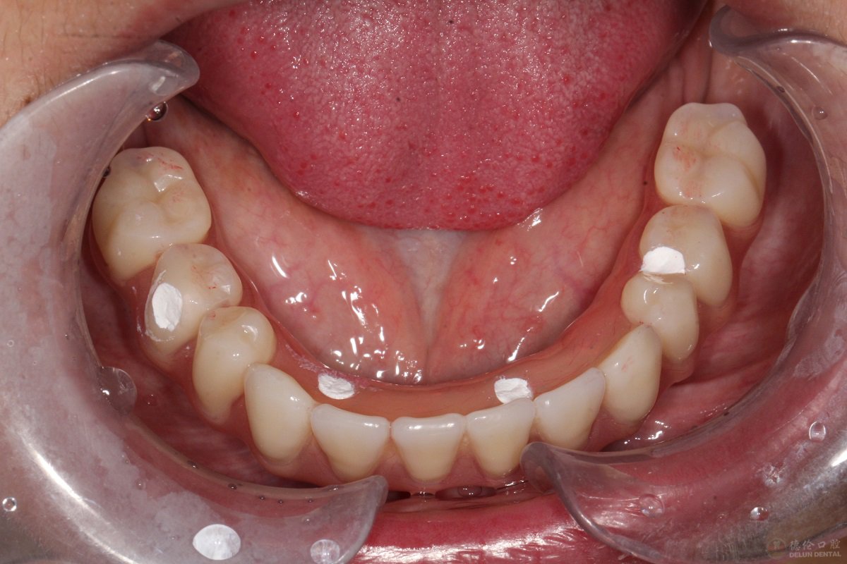 案例经过:30岁开始陆续缺牙,期初采取活动假牙修复,后牙齿越缺越多导致无法正常饮食、睡眠,到我院时下颌只剩3颗摇摇欲坠的牙齿,拔出下颌无法保留的3颗牙后进行半口种植修复。
