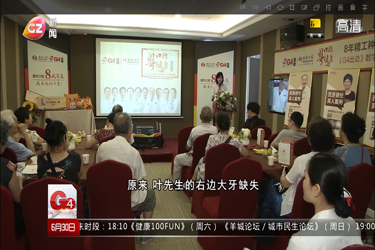 图为广州著名广播电视台《G4出动》对德伦数字化种牙直播进行报道