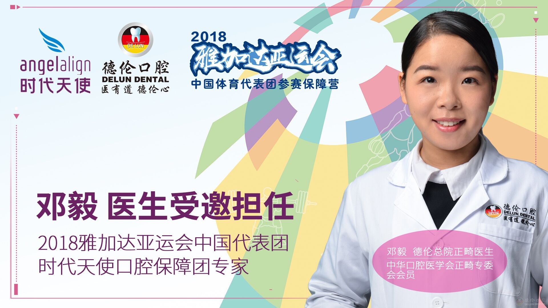 “口腔保障专家入驻雅加达亚运会为中国队运动员保驾护航”是时代天使联合国家体育总局训练局发起的一项公益性活动,在全国各地甄选出19家在口腔界影响较大,技术过硬的诊室组建成中国代表团保障营,德伦口腔熊小琴、郭伟、翁嘉华、邓毅4位医生受邀担任首批前往2018雅加达亚运会中国代表团时代天使口腔保障团专家,为运动员们解决口腔健康方面的后顾之忧,为他们的口腔健康和自信笑容保驾护航!