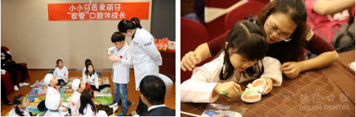 公益活动回顾2:德伦口腔在广东优生优育协会、儿童口腔保健委员会、广东省关心下一代工作委员会、广州市妇女儿童联合会儿童部等公益机构的协助指导下,创办了关爱儿童 从齿做起的大型爱牙公益活动,帮助儿童树立系统全面的口腔知识。