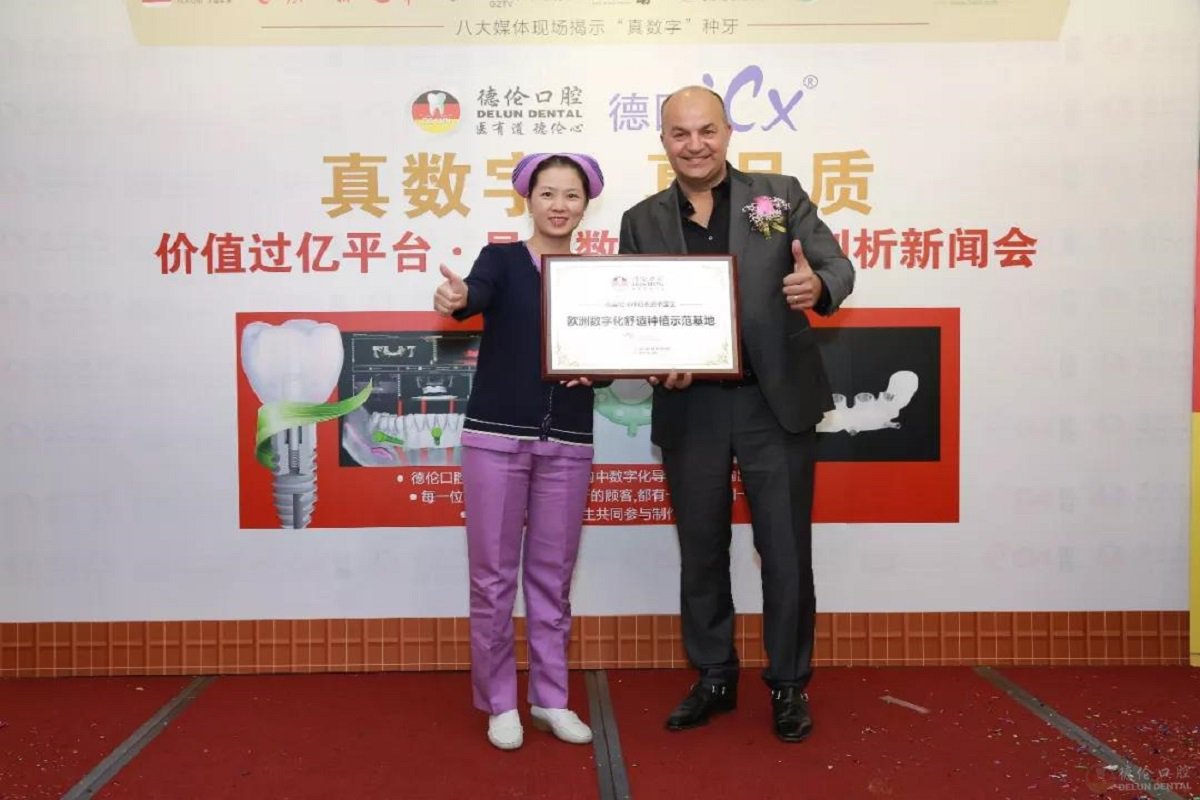 图解:德国ICX公司为德伦口腔授予“欧洲数字化舒适种植示范基地”荣誉,对德伦口腔的数字化舒适种植表示了高度认可