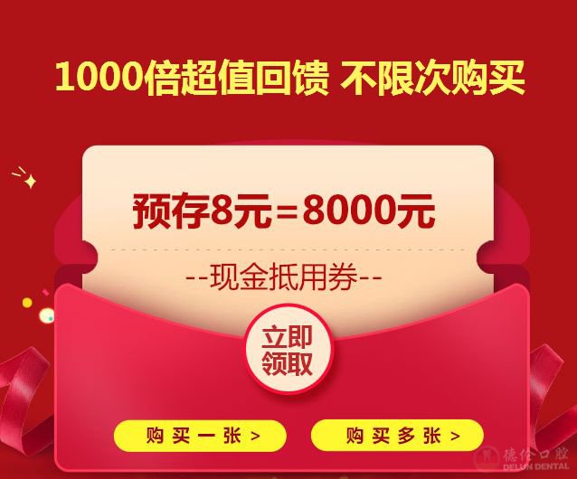 为回馈广大顾客,德伦口腔特推出“8元=800”岁末感恩回馈活动,仅需8元即可购得价值800的爱牙礼券,全面打响2018年末羊城市民健康保卫战。