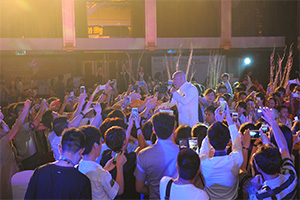张卫健以一身白色西服、佩戴墨镜帅气亮相,顷情演唱了几首成名歌曲,受到现场观众围捧,几乎引发骚乱,将活动推向高潮。