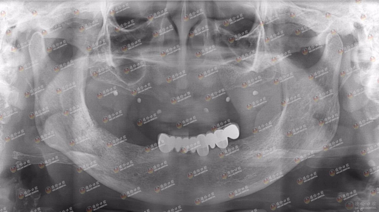 吴女士来德伦口腔诊疗时的牙片显示,只剩左下颌的种植牙,骨量不足
