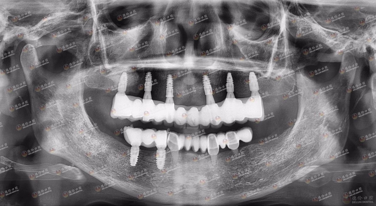说起吴女士的种牙故事,那是颇为转折的。因为自小爱吃甜食,所以吴女士的部分牙齿早早“退休”,十多年前正是固定义齿大行其道的时候,吴女士以伤害两颗邻牙的代价戴上了固定烤瓷桥!可这一带上烤瓷桥就一发不可收拾:吴女士的烤瓷桥越搭越长,直到下颌已经没有基牙可戴烤瓷桥。