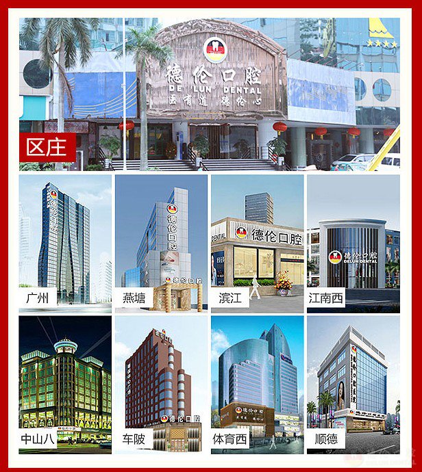 德伦口腔成立的9年间,开设了多家连锁分院:东风旗舰院、滨江分院、江南西分院、顺德旗舰院、燕塘分院、车陂分院、中山八分院、体育西分院、区庄分院,为市民提供舒适、便捷、可靠、优质的口腔诊疗服务。在这庞大的连锁分院背后,汇聚了国内外为患者的诊疗保驾护航。