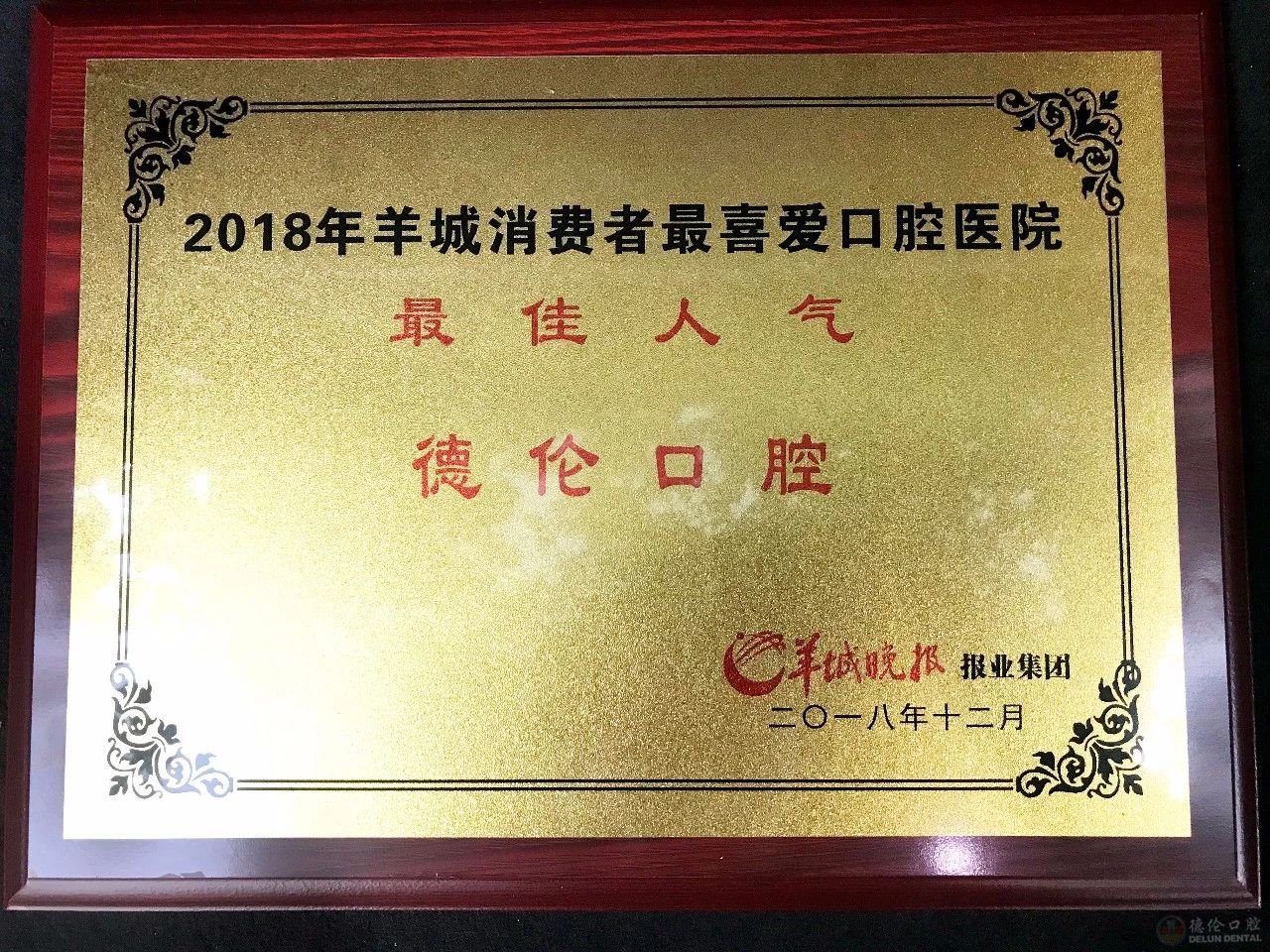 德伦口腔荣获2018年羊城消费者喜爱的口腔医院、2018年羊城消费者喜爱的口腔医院-合适人气(公众票选)