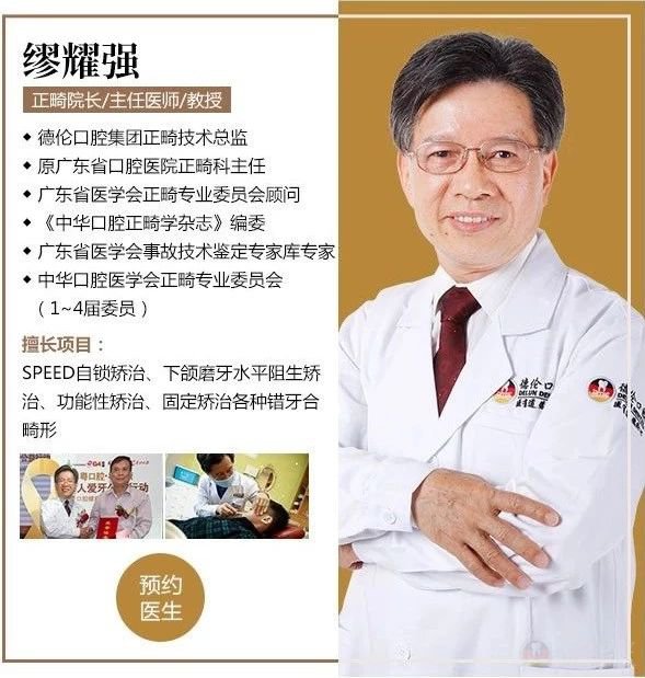 缪教授从事口腔临床工作已有36年,是原广东省口腔医院正畸科主任,多次赴美国、法国、台湾、香港、日本等地参加国际正畸研讨会。不仅掌握医疗技术,具有解决疑难重症的能力,且多次主持开展新技术新业务。作为第一作者,在国内外专业杂志发表论文30余篇,且被全球口腔正畸学界著名杂志J.Clin.Orthod发表。