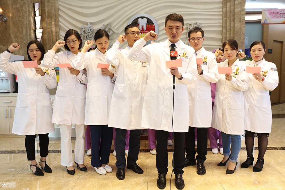 德伦口腔医护团队宣誓,谨遵询证医学与准确医学,100分真诚服务顾客,承诺对每一个顾客认真负责