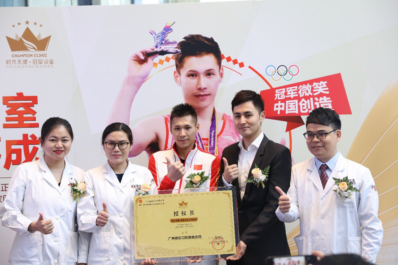 在落成仪式当日,奥运冠军、中国体操男队队长——张成龙先生,作为冠军代表亲临德伦口腔正畸院,为冠军诊室授牌,并亲自体验矫牙黑科技——数字化口内扫描仪。