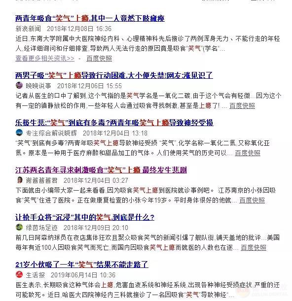 去年,一篇名为《留学生在国外吸食“笑气”成瘾,身体垮掉坐轮椅回国》的文章在网络引发超过10万次点击。一名在西雅图留学的中国女学生因为好奇,在国外吸食笑气,致生活及身体机能全面紊乱,不得不放弃学业,坐着轮椅回国。如今在网络上一搜,“笑气上瘾”的新闻比比皆是。