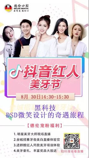 牙齿是人的第二张脸,微笑的高分与否取决牙齿的整齐、亮白度,也是影响人际关系的重要关键,相信很多小伙伴会在路上,或者是自己身边的朋友看到黄牙,可以说黄牙已经成为大部分人的烦恼,毫不夸张地说,美白牙齿一下子提升颜值、气质。而德伦口腔举办的抖音红人美牙节,就是为了提升黄牙星人的自信,让黄牙变白牙。
