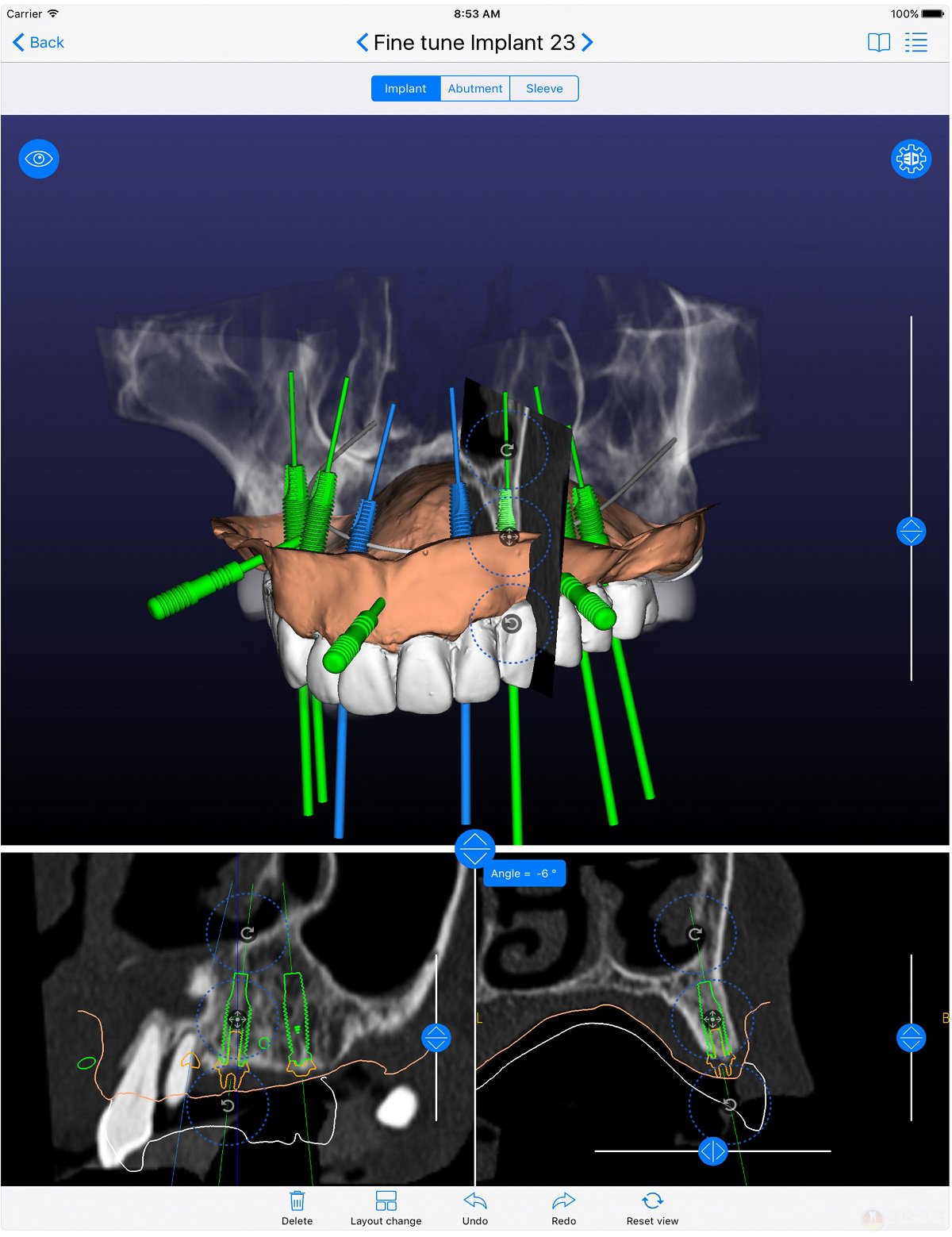 接着,只见广州德伦口腔数字化中心的专业人员将相关影像资料和数据导入到专业的口腔种植方案设计软件中,在软件内进行设计,形成设计方案。