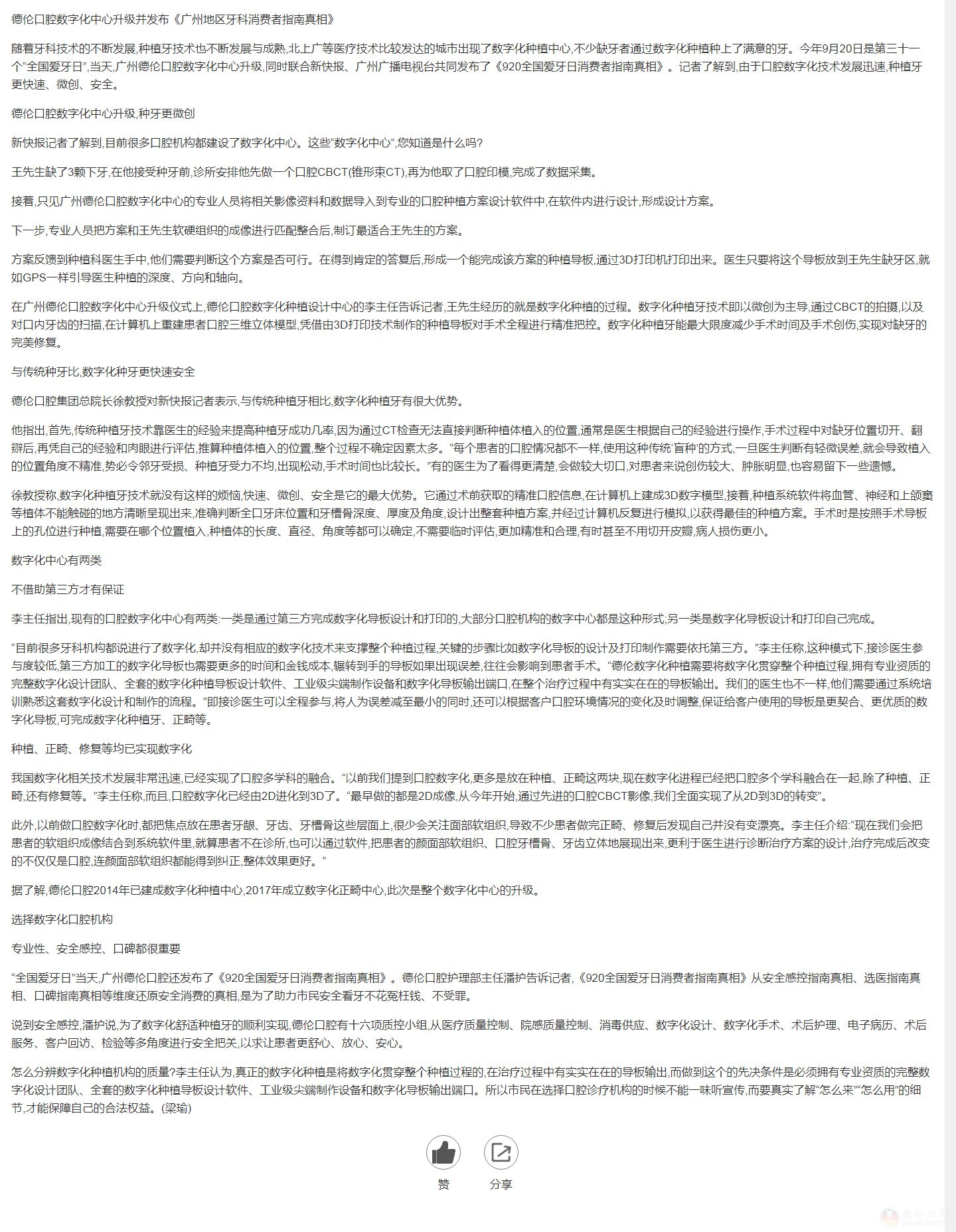 德伦口腔数字化中心升级并发布《广州地区牙科消费者指南真相》