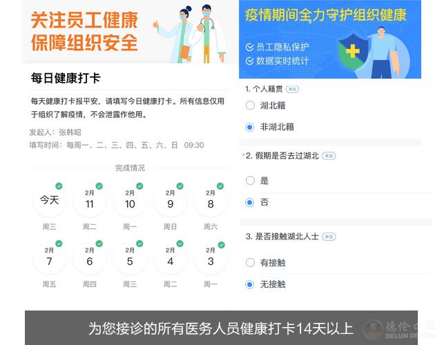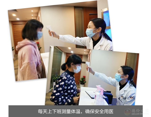 德伦口腔对院内环境、物表、工作人员、医疗废物分类管理、诊疗顺序等进行把控。同时对医务人员和非一线工作人员进行分级防护。德伦口腔严格执行全体工作人员每天上下班测量体温,全体医护人员新冠肺炎培训考核满分通过,所有接诊医护人员需健康打卡在14天以上。