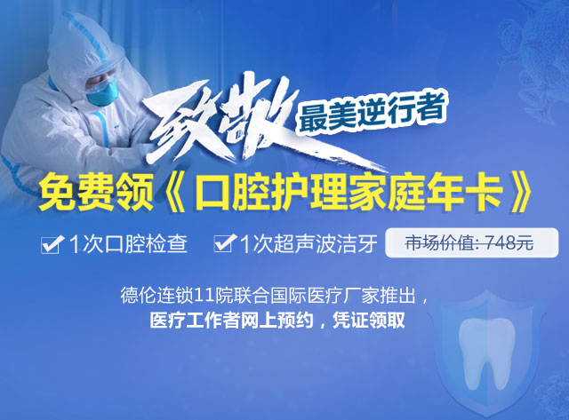 广州德伦口腔连锁11院向每一位在前线奋战的逆行者致以崇高的敬意,我们联合多个国际医疗厂家,在2020年4月1日起~2021年3月31日,对所有医务人员实行享受德伦口腔《口腔护理家庭卡一年》政策: