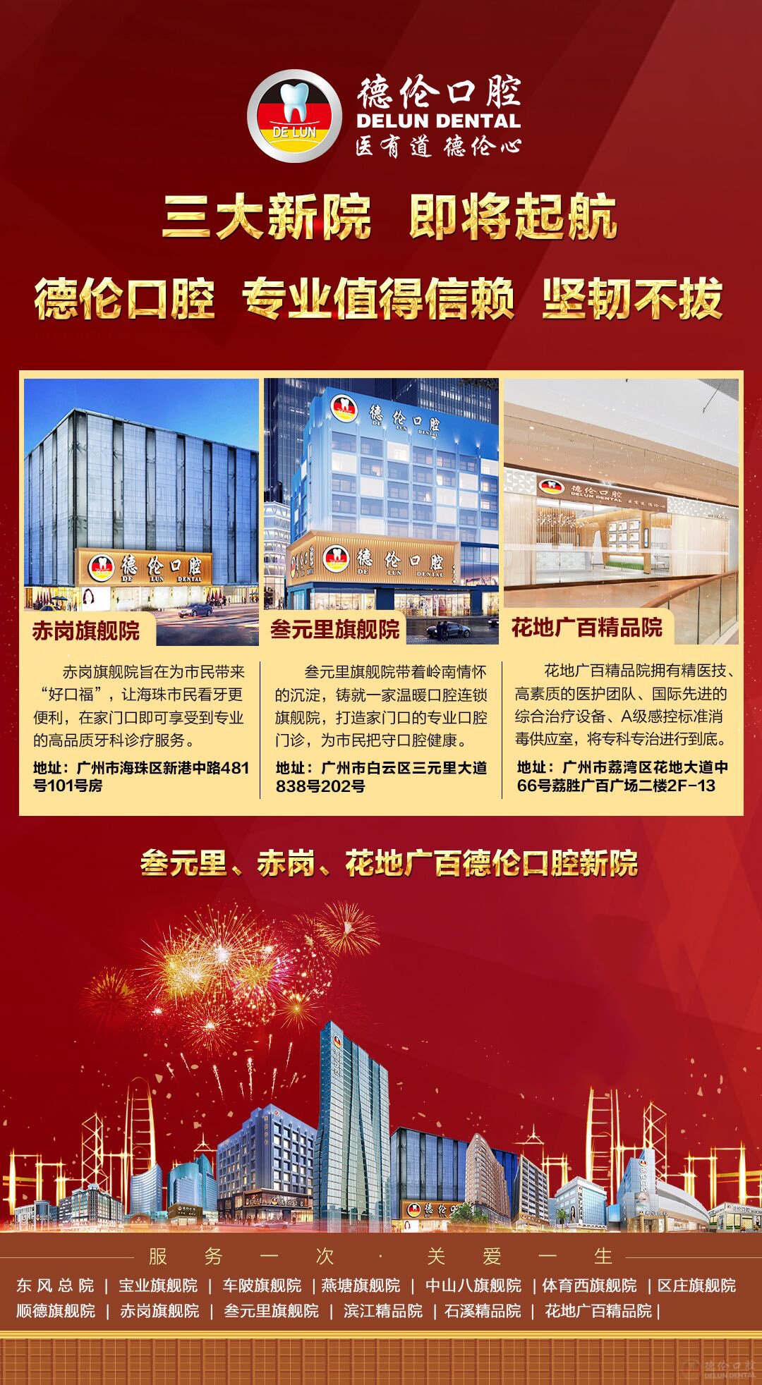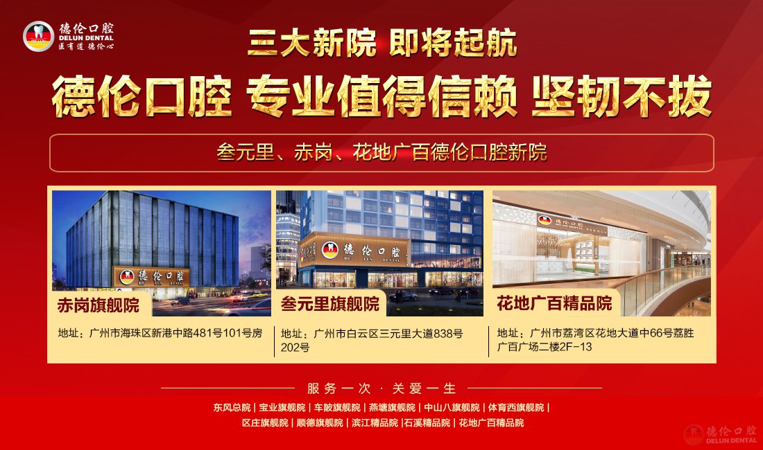 接下来德伦口腔赤岗旗舰院、叁元里旗舰院、花地广百精品院即将以全新形象矗立在羊城。随着三大新院盛大起航,德伦版图再次扩大,进一步满足周边市民的看牙需求,届时市民可随时随地享受到德伦口腔专业、可靠、便捷的口腔医疗服务。