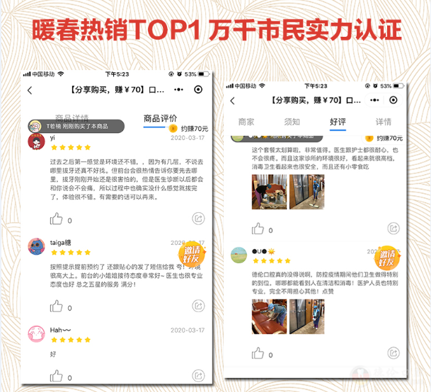 在疫情严控时期,作为首批通过卫生部门批准认可复工的机构,德伦口腔通过做好严格疫情防控措施的同时为广大市民提供高质量的口腔诊疗服务,成功帮助1000多名购买“急急护牙套餐”的口腔急症市民重获口腔健康,并得到300多条线上五星好评。