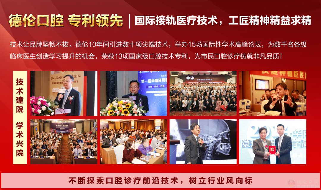 德伦口腔成立10年来,贯彻实施“技术建院,学术兴院”的理念,口腔诊疗技术始终保持和世界水平齐步,现已拥有13项各类口腔专利诊疗技术,涵盖种植、正畸、全科、洁牙等各个学科。让口腔科技造福更多市民,助力全民口腔健康早日实现。