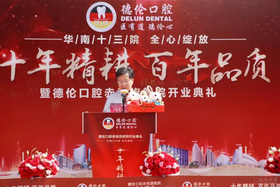 开业盛典伊始,德伦口腔集团正畸技术总监缪耀强院长上台致辞。他提到,2011年德伦口腔在广州正式成立,从当初开始,德伦口腔便坚持以“医有道·德伦心”的理念为广大市民提供可靠、专业的口腔诊疗服务。德伦人精耕德伦之道:包含以“专业严谨,精益求精”的医疗之道,为市民提供精良医技;精耕服务之道,以“服务一次,关爱一生”的服务理念为消费者提供品质服务;精耕管理之道,以“务实快捷,担当共赢”的精神,与合作伙伴共建医疗基业。