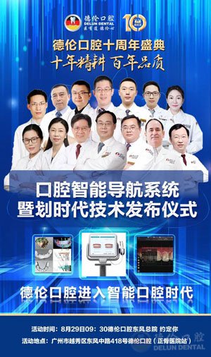 8月29日,德伦口腔将举办十周年庆典——十年精耕 百年品质,口腔智能导航系统暨划时代技术发布仪式,诚邀各界莅临见证!