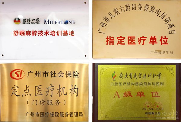 官司方认可的具备临床麻醉资质,广州民营口腔首批口腔舒适麻醉诊疗中心;美国STA迈士通厂家为德伦口腔颁发“舒眠麻醉技术培训基地”授牌、广州市儿童六龄齿窝沟封闭项目合作单位等。