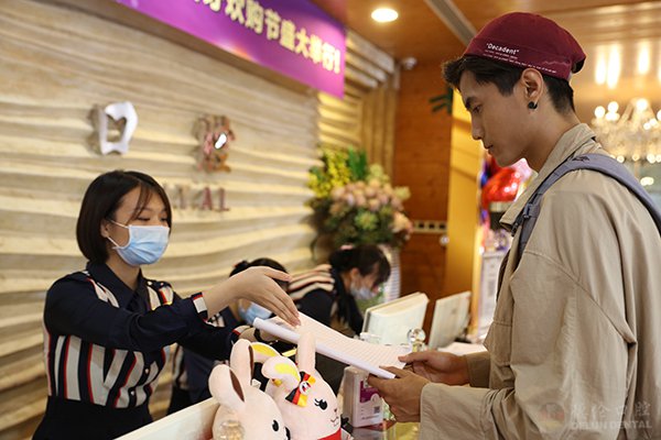 刚进德伦口腔大门,穿着制服的导医小姐姐便很热情接待了我,测量好体温后,导医递给了我一份表格,引导我填写上面的信息,比如姓名、电话、牙齿问题等等。导医和我说,填写这些信息的目的是建立我个人的口腔档案,方便日后追踪与跟进我的口腔情况。