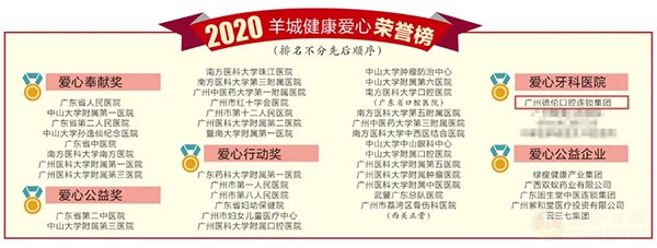 热烈祝贺德伦口腔荣获2020羊城健康爱心荣誉榜“爱心牙科医院”荣誉称号!