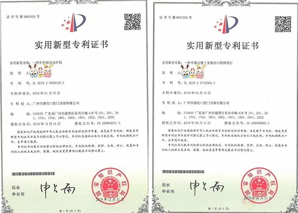 德伦口腔现有实用新型专利技术15个、发明专利1个、计算机软件著作权5个。涵盖种植、正畸、全科、洁牙等各个学科