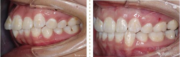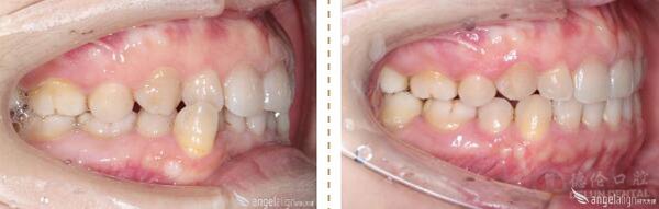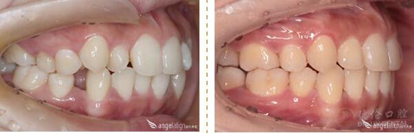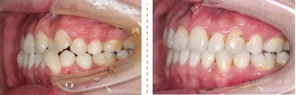 治疗结果:排齐牙齿、咬合改善、达到I类关系、中线改善