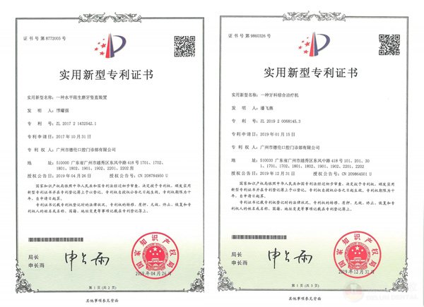 德伦口腔建院十一年,深知掌握自主核心科技的重要性。自德伦口腔建院以来,一直重视科研创新能力,并不断增加科研投入。截至目前,德伦口腔现有实用新型专利技术15个、发明专利1个、计算机软件著作权5个。涵盖种植、正畸、全科、洁牙等各个学科,让口腔科技造福更多市民,助力全民口腔健康早日实现。