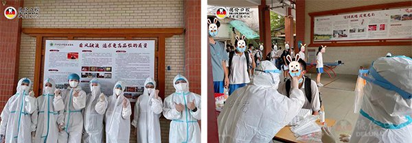 5月28日中午,烈日当空。德伦口腔医护团队在潘主任的带领下前往广州机务段综合体育场、广州市第七中学等三个临时采样点,为广州市第七中学的1700余名师生及矿泉街道居民进行核酸采样工作。