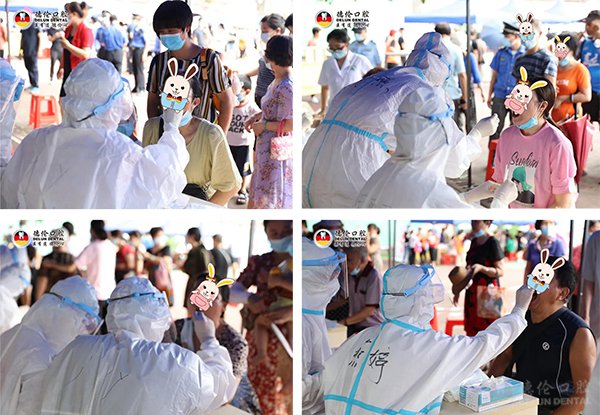 德伦口腔守护民众生命可靠,为广州防疫献一分力,无论是外派医护团队支援核酸采样,还是在院内做好防疫工作,德伦口腔全体医务工作者众志成城,使命必达,打赢疫情防控阻击战!