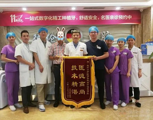 对于种牙的人开心的莫过于种完牙后吃啥都有口福,所以在完成治疗后,刘叔携三面锦旗赠与德伦口腔东风总院口腔种植科副主任罗朝阳团队,向罗主任团队表达浓浓的谢意。