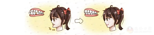 在儿童的生长发育过程中,许多不良习惯所致的牙颌畸形将影响牙颌面软硬组织的正常发育。如前牙反颌,俗称「地包天」,就是指下前牙位于上前牙唇侧的畸形,会使上颌骨的发育受到限制,而下颌骨由于没有正常协调关系的制约而过度向前发育,从而形成面中部凹陷和下颌骨过度前突畸形。