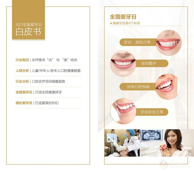 德伦口腔2021《口腔健康白皮书》收集了各项口腔数据,通过儿童、成人、老年人口腔健康数据等不同年龄段来分析中国人口腔医疗需求,从中给出口腔健康治疗建议,帮助市民选择合适的口腔诊疗,助力行业发展以及实现全民口腔健康。