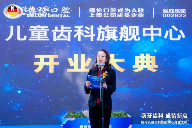 广东省口腔医学会儿童口腔医学专业委员会主任委员赵玮女士、广东省民营牙科协会会长欧尧先生致辞,祝贺德伦口腔儿童齿科旗舰中心启航