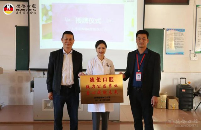 麻榨镇中心小学吴伟雄校长为德伦口腔集团授牌