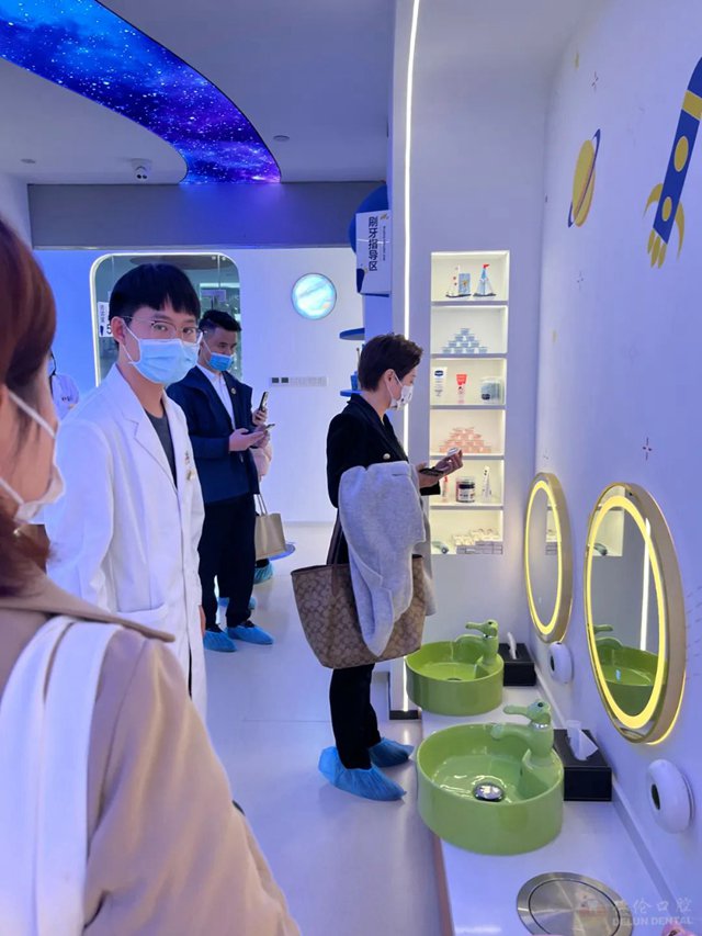 会后,德伦口腔儿童齿科旗舰中心团队与民营口腔协会儿牙分会各位老师共同参观儿牙中心,“遨游太空,探索奥妙”,沉浸式体验孩子看牙防龋“主战场”。