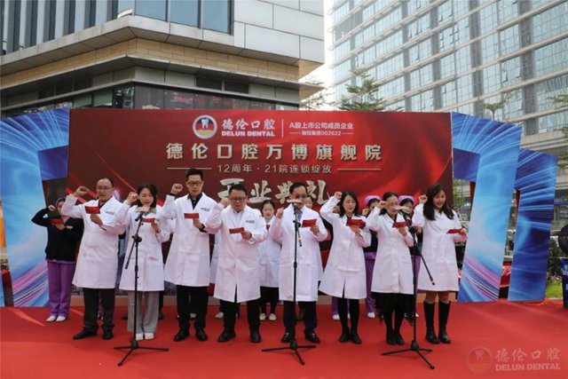 德伦口腔医护团队进行庄严宣誓,一句句铿锵有力的誓言,代表德伦口腔全体医护人员不忘初心,竭尽全力把口腔健康带给大湾区市民的决心和信心