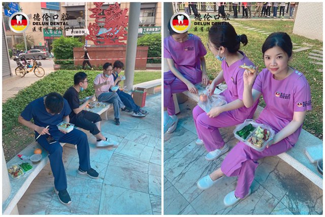 忙碌一上午,德伦口腔医护团队脱下防护服稍作休息,午餐后继续核酸采样工作