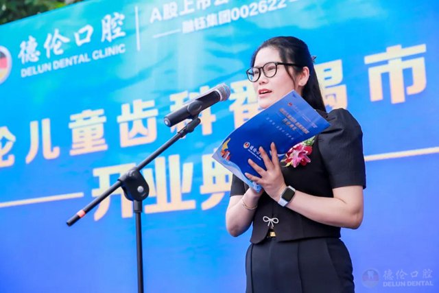 开业盛典伊始,德伦口腔集团正畸技术副总监兼总院技术副院长熊小琴上台致辞。她提到,每个人是自己健康的第一责任人”和“家长是孩子口腔健康的第一责任人”理念。德伦人时刻谨记企业使命:让全民拥有一口健康好牙,始终坚持以“服务一次,关爱一生”的服务理念,为每位德伦顾客提供满意服务,在医疗服务上,能做到确保医疗质量,体现社区口腔关爱,对每位市民服务到位。